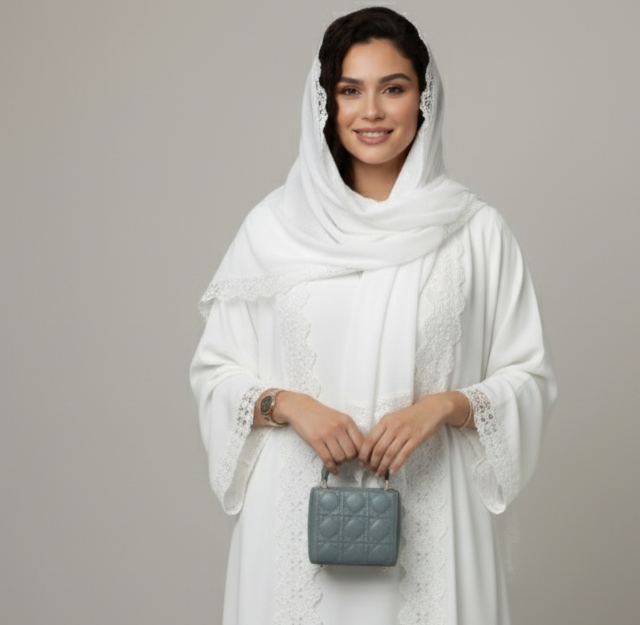 Haki & Cu 2pcs Set of Fashionable Pink Round Collar Embroidered Long Robe + Headscarf | Middle Eastern Clothing, Street Style